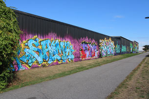We painted for 3 days straight, morning till night, (Friday August 15th through Sunday August 17th) and created artwork on 20,000 square feet of primed out wall. The 30 local and regional artists that attended this year were given full creative freedom and painted whatever they wanted. Among the photos below you will see an array of graffiti "pieces" (short for masterpieces) as well characters and various background elements that tie some of the pieces together in cohesive "productions" between artists.